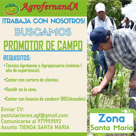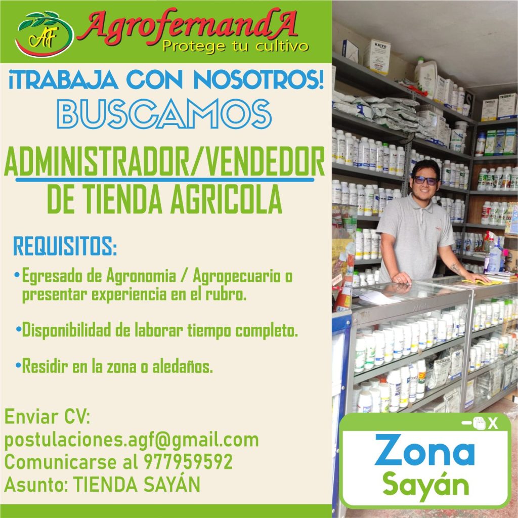ADMINISTRADOR/VENDEDOR DE TIENDA AGRÍCOLApor Nelson Pele Ortega Salazaragosto 11, 2025agosto 11, 2025 Agrofernanda Tiempo completo Publicado hace 7 meses Características del Puesto Categoría de PuestoProducción Agropecuaria Aplicar para este trabajo Name*Email*Phone*Se requiere un número de teléfono válido. Cover Letter*Adjuntar currículum* Enviar